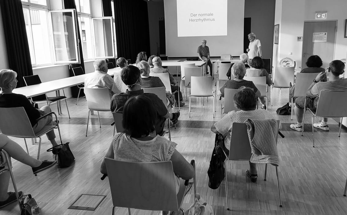 Am 19. Mai 2022 trug Dr. Norbert Röhrig im Gemeindesaal über Herzrhythmusstörungen vor (Fotos: HKV).