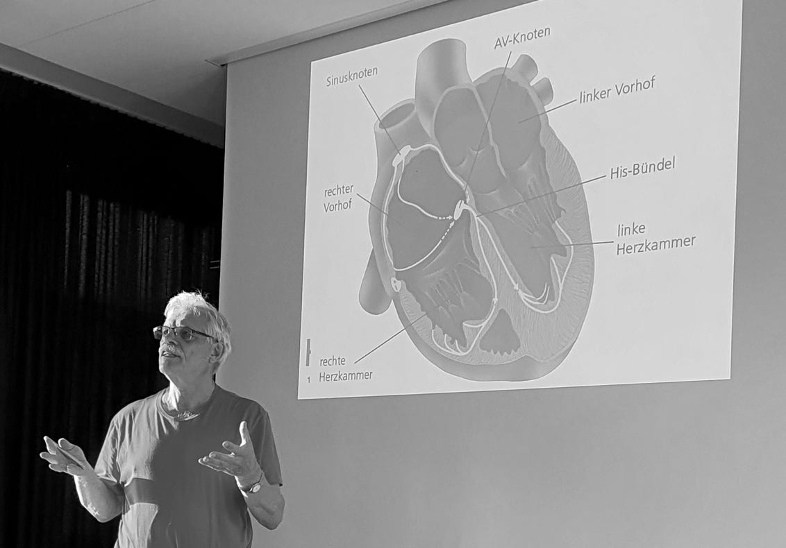 Herzrhythmusstörungen können harmlos sein – oder tödlich, wie Dr. Norbert Röhrig in der vergangenen Woche im Gemeindesaal in Gaiberg erläuterte. Sein Vortrag war der erste nach der langen Corona-Pause, die der Heimat- und Kulturverein Gaiberg (HKV) organisierte. Rund 20 Zuhörer erfuhren in etwa eineinhalb Stunden, wie man Herzrhytmusstörungen erkennt, klassifiziert, behandelt – und ihnen auch vorbeugt, durch eine entsprechend gesunde Lebensweise mit ausgewogener Bewegung und dem Vermeiden von Alkohol.