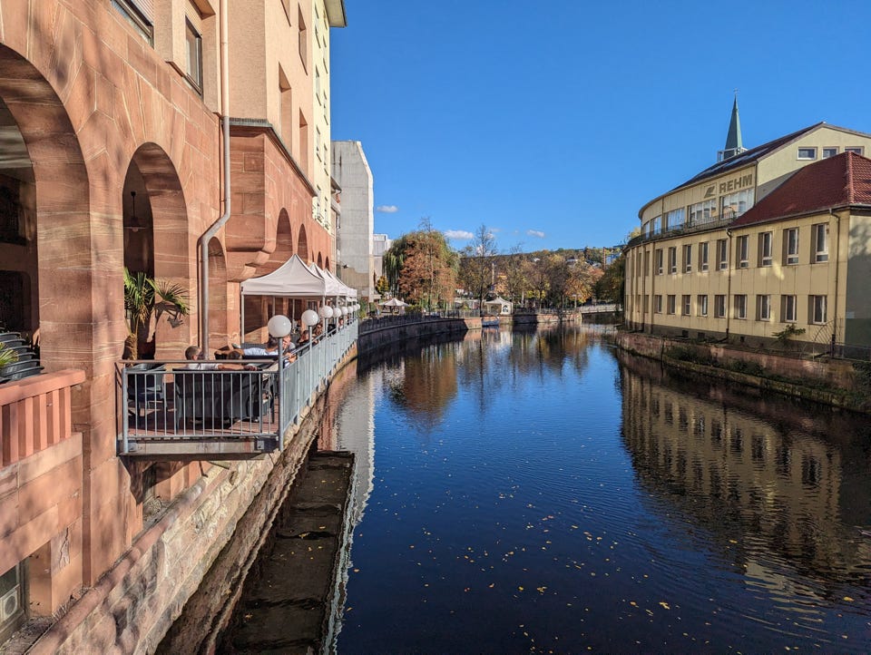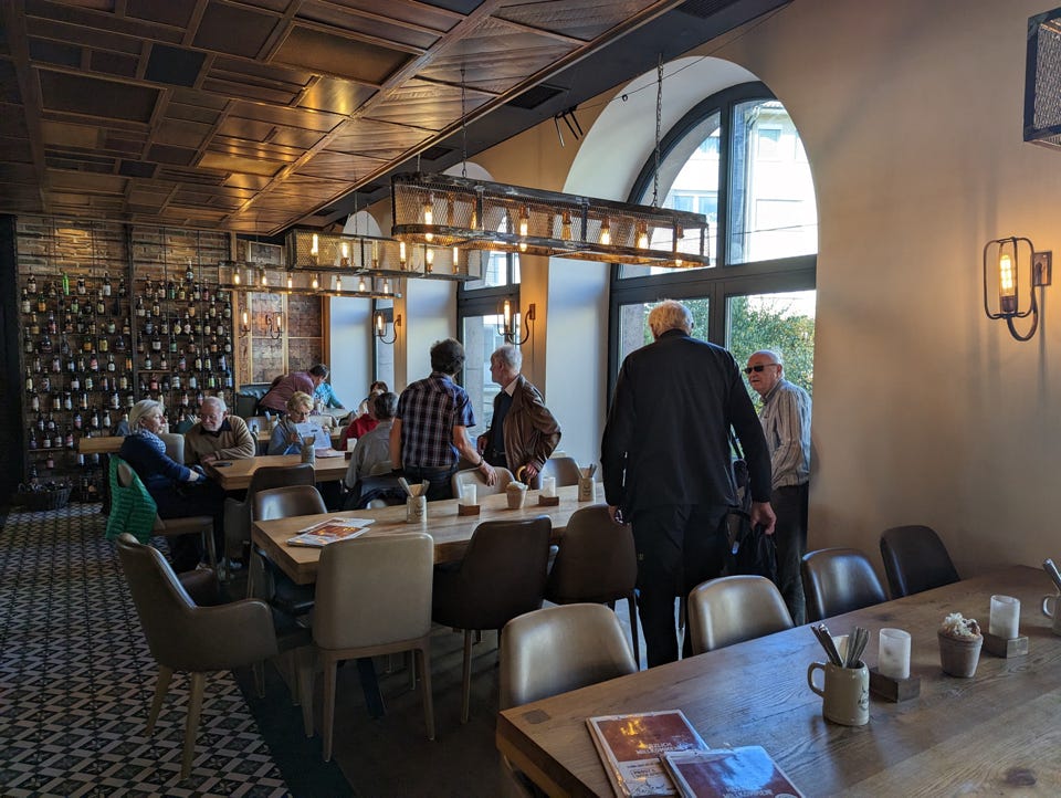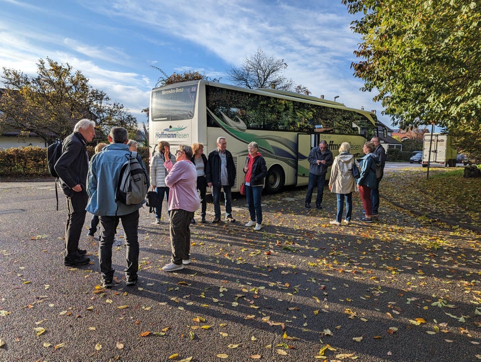 Dann wieder Kontrastprogramm: Der Bus wartete bereits auf die HKVler, um sie zu einem urigen Brauhaus mit Restaurant zu fahren, dem „Platzhirschen“. Nach gemütlichem Essen und Trinken lud dann die Stadtmitte von Pforzheim zur Besichtigung ein, die in wenigen Minuten Fußweg vom Restaurant entfernt war, oder auch ein entspannter Spaziergang die sonnige Enz entlang, die durch die Stadt zum Busparkplatz führte. Auch Gaibergs Ehrenbürger und das älteste Mitglied unseres Vereins, Hans Flor, meisterte mit seinen 96 Jahren den Weg. Entspannen ließ sich dann wieder in der angenehmen Rückfahrt im Bus. Die Fotos zeigen den Start der Führung außen am Gasometer, das Innere des Gasometers mit der Aussichtsplattform und einem Teil des Panoramas der Riff-Unterwasserwelt, Ankunft im Brauhaus-Restaurant, die Enz durch die Stadtmitte von Pforzheim, Sammeln am Bus in Gaiberg (Text und Fotos: Rolf Kickuth).