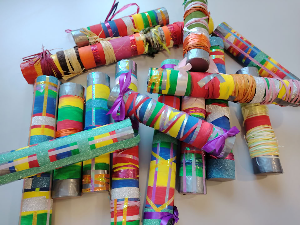 Über eine Stunde wird „gegroovt“.Wir erzeugen mit unseren Körpern und den selbst gestalteten Rasseln mitreißende, treibende Rhythmen , spüren uns selbst tanzend und stampfend und finden einen „Funky Groove“ als Gruppe. „Let's groove!“...“Lass uns bewegen!“ (Übersicht mit KI)