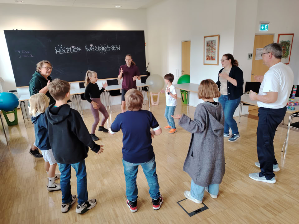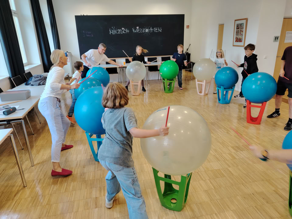 Kurzer Umbau im Bürgerforum. Annette trommelt mit uns mit „Kochlöffeln“ auf großen Gymnastikbällen, die auf umgekehrten Hockern stabilisiert sind. Der Funfaktor steigt nochmal ins Unermeßliche! Coole Musik und schweißtreibende Bewegungen füllen den Raum. In kürzester Zeit findet sich die Gruppe wieder im Trommelrhythmus zusammen und ein ganz anderer „Groove“ liegt in der Luft. Annette hat eine mitreißende und absolut professionelle Art, Menschen in Bewegung zu bringen! Durch ihre persönliche Präsenz schafft sie es, Menschen aller Altersgruppen für Bewegung und Rhythmus zu begeistern! Danke!
